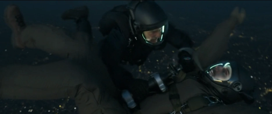 When the plane arrives via Paris, Walker and Hunt are supposed to jump off with parachutes and special oxygen devices. When the plane's cargo hatch opens, Ethan realizes they're right over a thunderstorm and plans to change the plan. Walker doesn't want to hear about it, interrupts Hunt's objection by arrogantly pulling the oxygen cable out of his helmet and jumps out of the plane while Ethan reconnects the cable to the helmet. Still in the air, Walker gets pretty close to a flash of lightning and loses consciousness, so that he falls down motionless on the city. Ethan, who jumped after that, is able to save his life and open his parachute in time.
