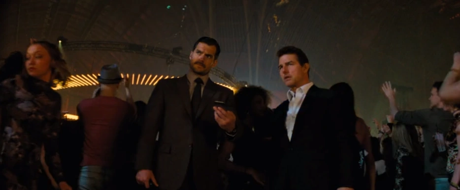 After they both arrive alive on the roof of the building where the White Widow wants to meet Lark during a concert, they spy on the situation in the building. Equipped with special search devices, they now mix into the crowd to find Lark in the crowd. Walker finally contacts Ethan by radio and tells him that his device has indicated that Lark is in the men's room. Accordingly, both enter the toilet and try to identify Lark using Walker's device. When they find the man, they want to systematically turn him off so that Ethan can take on his identity and meet as the Lark with the White Widow. However, "Lark" becomes skeptical, so that there is a scuffle in which Walker knocks the man down with his suitcase. However, this contained the system which "Lark" should scan the face and make a mask so that the machine is damaged and no longer works.